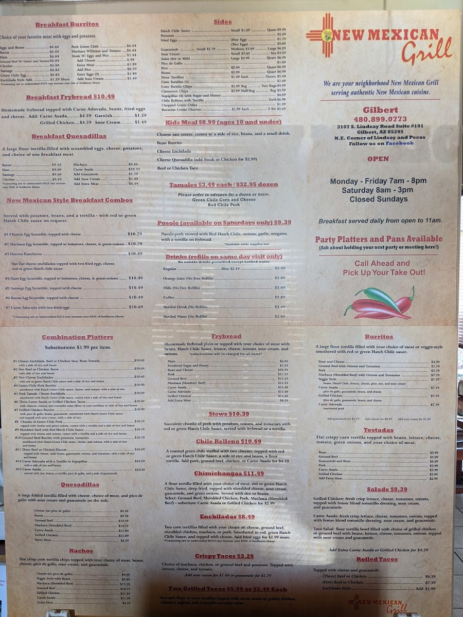 New Mexican Grill Menu